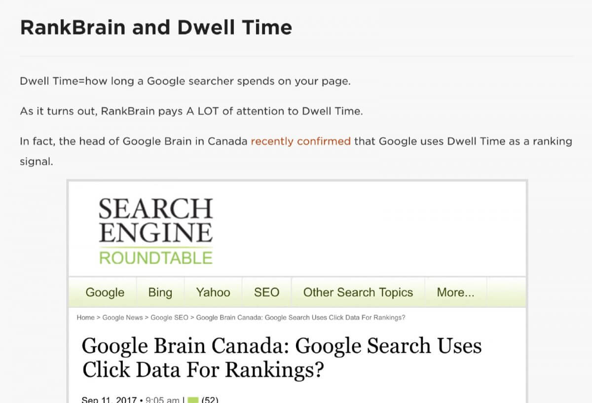 In fact, the head of Google Brain in Canada recently confirmed that Google uses Dwell Time as a ranking signal.