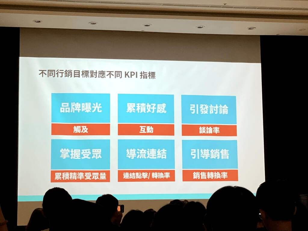 這裡,傑哥說明依照不同行銷目標,可以訂定出相關的 KPI 指標,像是…