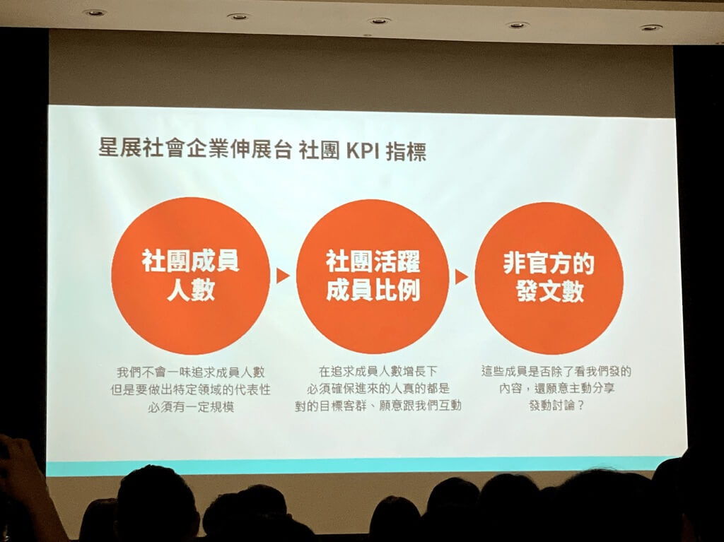 一開場由 KKday 營銷長 Yuki 敘述社群經營三個面向,第1是名、第2是利、第3是權,社群經營者需要清楚暸解老闆所期待的是哪個面向?