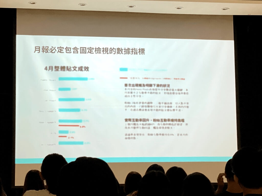 因此有二項執行方向以及針對該項訂定 KPI 數據監測,「平均貼文自主觸及」、「平均貼文互動率」這二個指標是當時最關注的,自主觸及、互動率越好也就表示,貼文越來越合粉絲的胃,讓社群經營往正向發展。