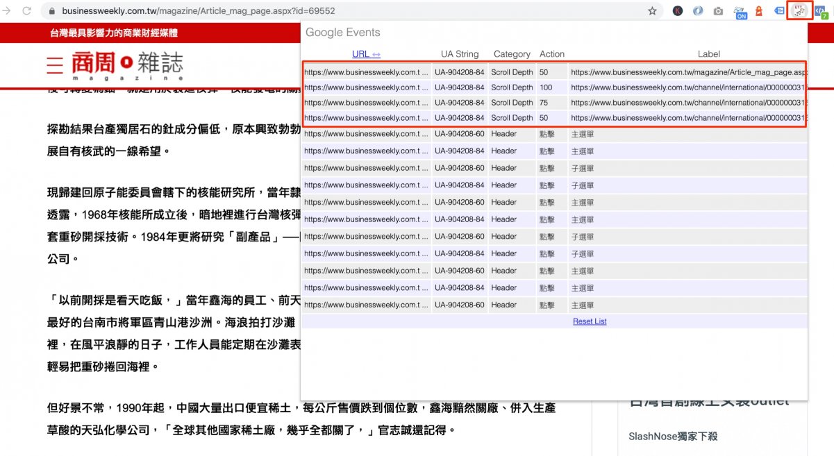 許多網站營運方很想要知道瀏覽者閱讀行為,因此都會在該頁面多少百分比時,而透過 Google Analytics 自動送出事件方式收集數據。