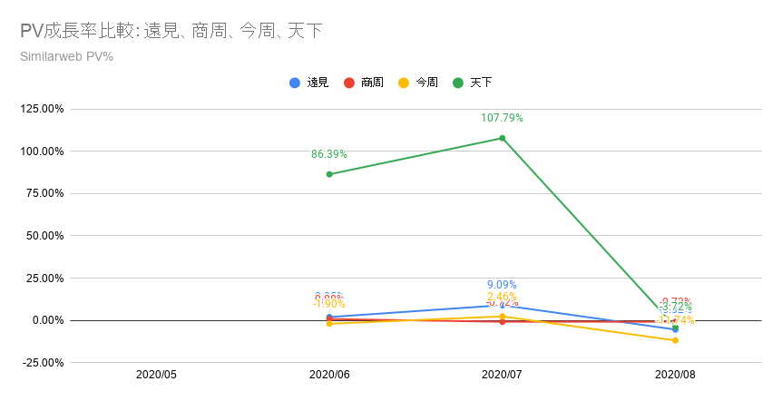 PV成長率比較:遠見、商周、今周、天下
