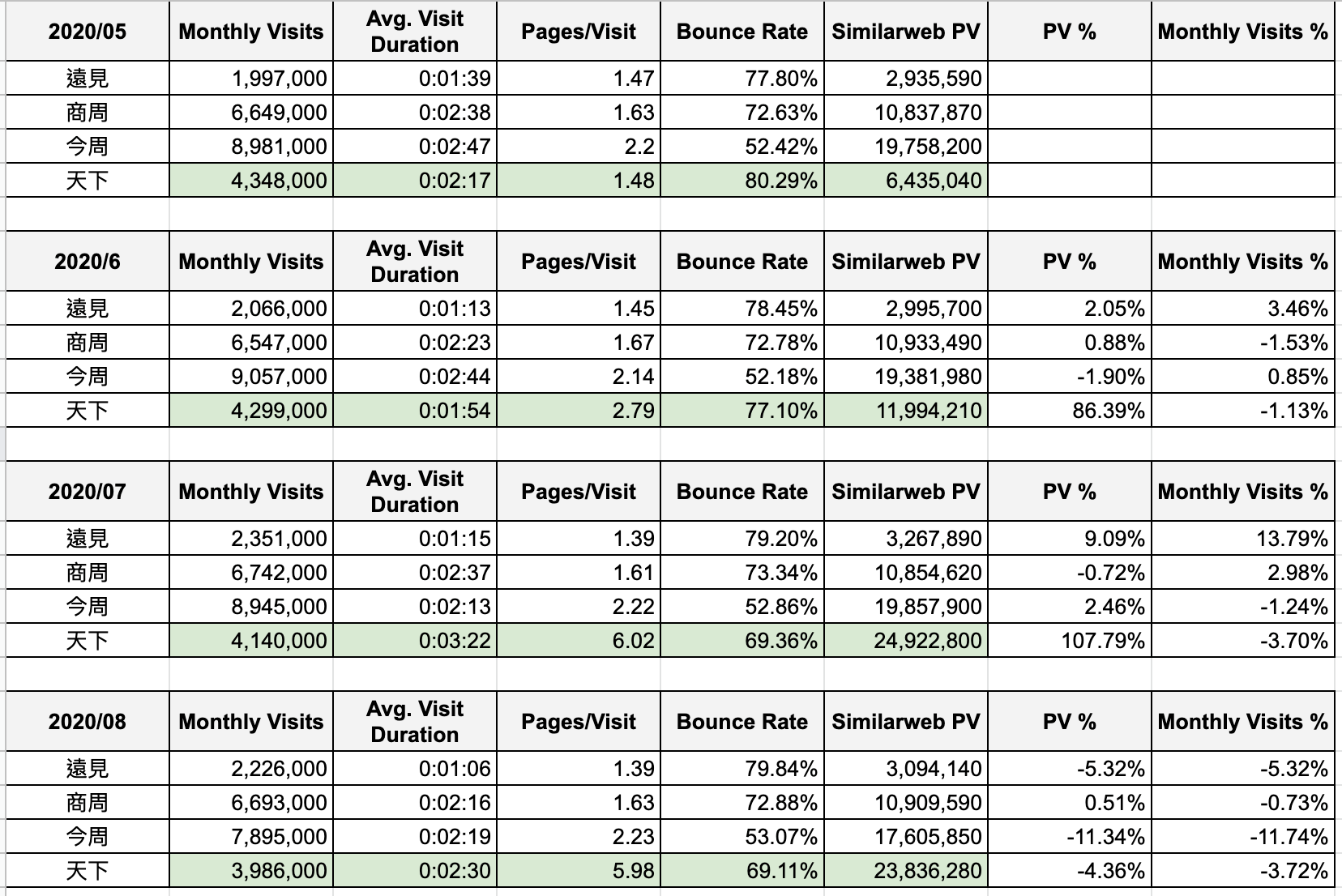 Similarweb 2020/5 ~ 2020/8 資料