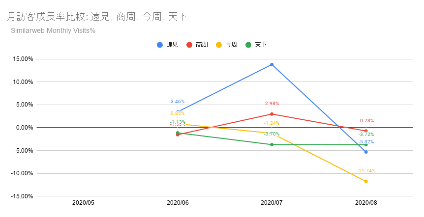 月訪客成長率比較:遠見、商周、今周、天下